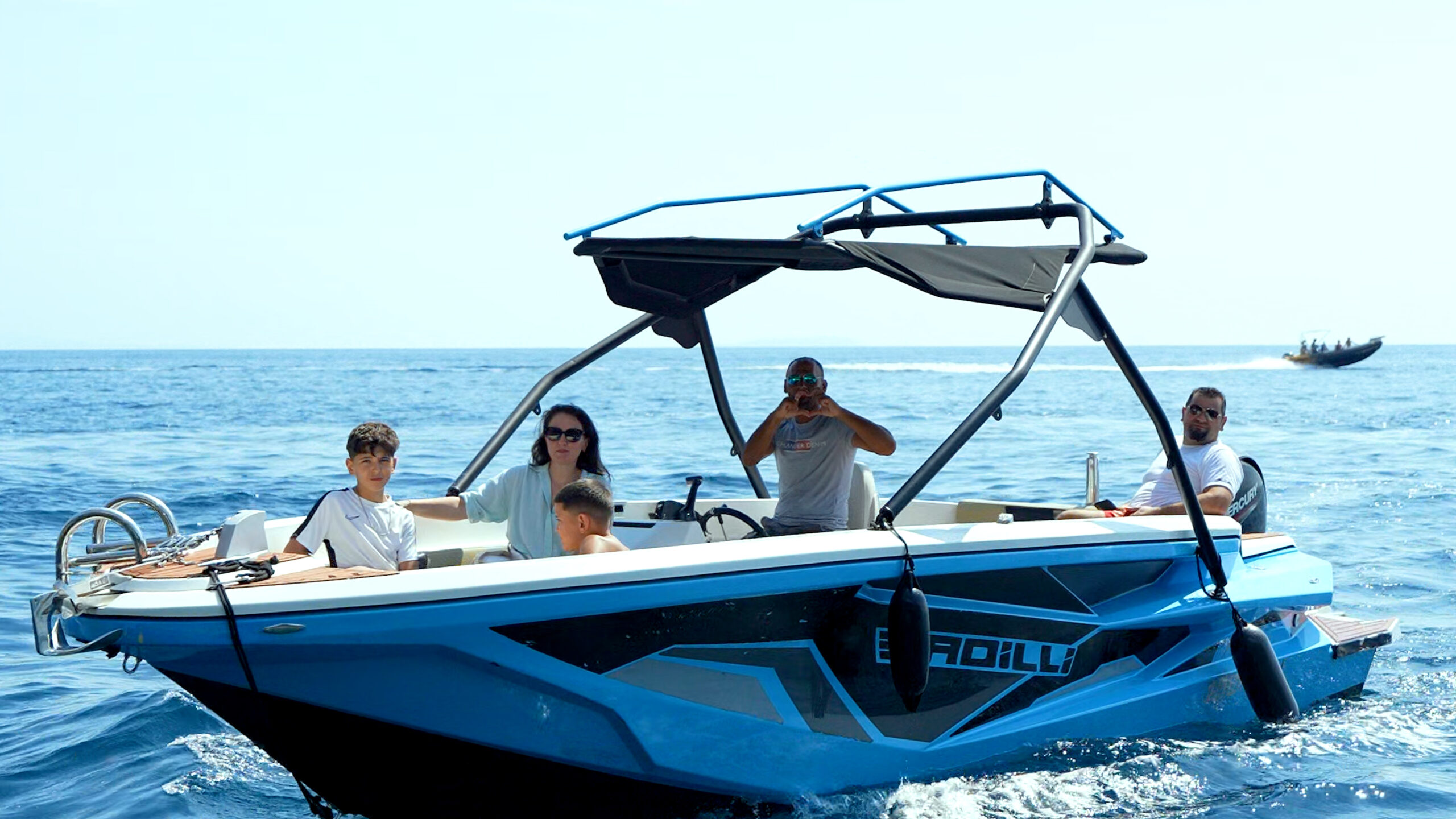 This is our brand new excursion boat, made for comfortable and enjoyable trips in blue waters, equipped with a powerful engine and able to accommodate 24 people.